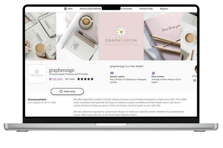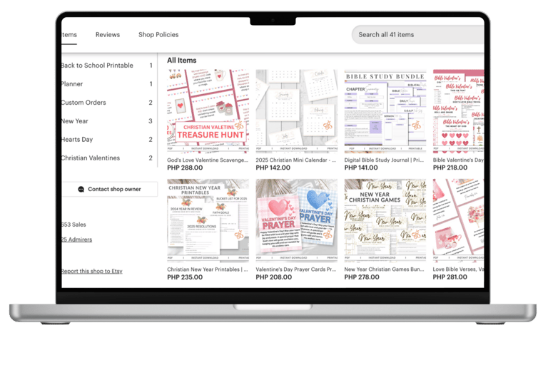 For this project, I created both the designs and listings for a client’s Etsy shop, featuring Christian-themed digital products based on seasonal trends. My role included crafting visually appealing printables and managing their presentation on the Etsy platform.