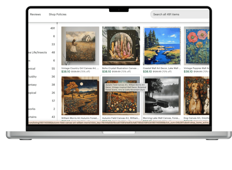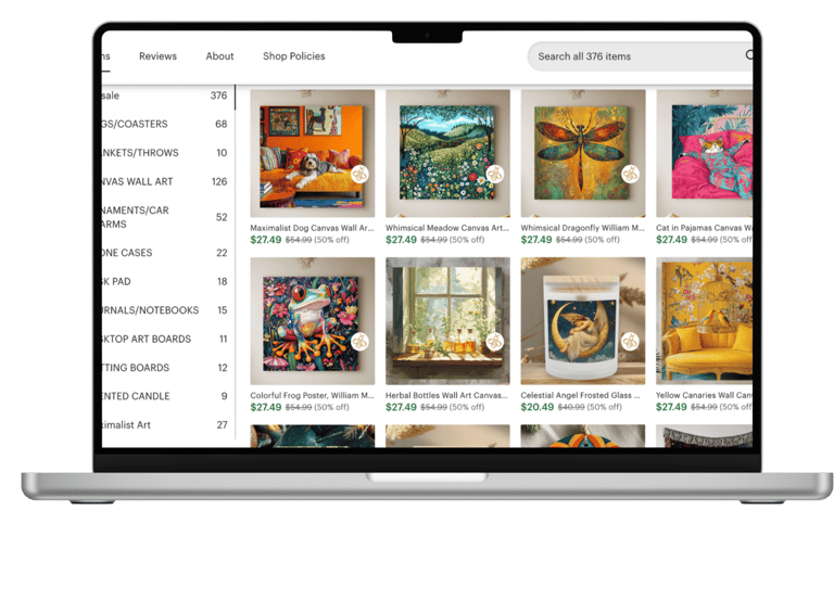 For this project, the client provided the designs, and my role was to create mockups, set up product listings, and upload them to their Etsy shop. I focused on presenting the designs in the best possible way, ensuring each product was ready for sale.